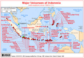 85. Indonesia memiliki lebih dari 400 gunung berapi dan 130 di antaranya termasuk gunung berapi aktif. Sebagian dari gunung berapi terletak di dasar laut dan tidak terlihat dari permukaan laut. Indonesia merupakan tempat pertemuan 2 rangkaian gunung berapi aktif (Ring of Fire). Terdapat puluhan patahan aktif di wilayah Indonesia.